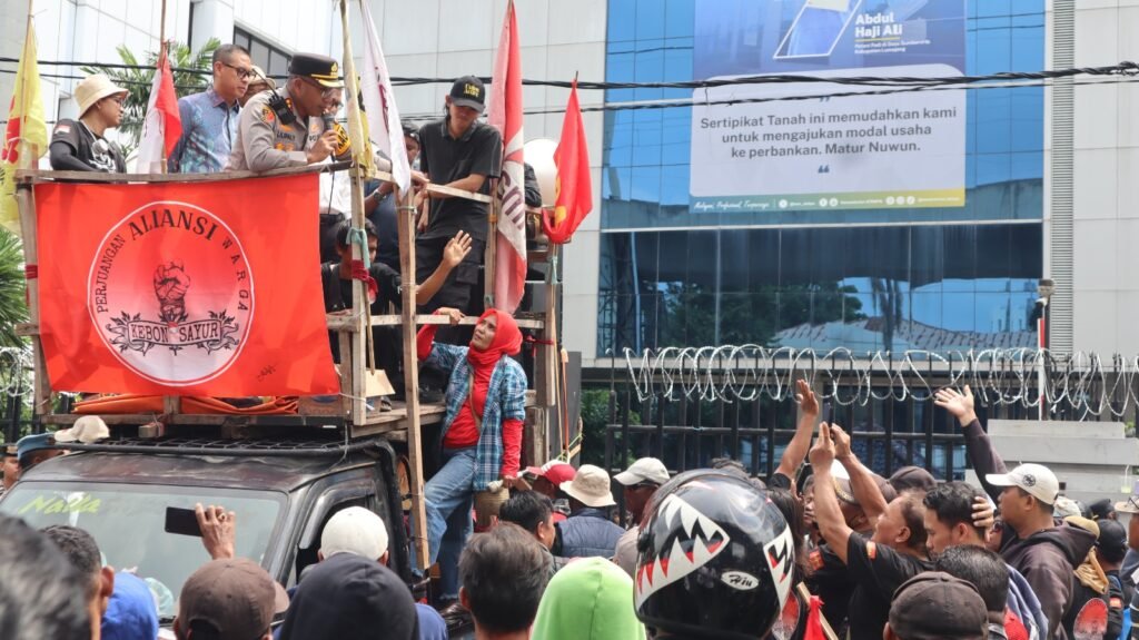 Aksi yang berlangsung sejak pukul 09.45 hingga 12.13 WIB diikuti kurang lebih 100 massa, dengan tuntutan utama mendesak Menteri ATR/BPN agar memberikan jaminan dan kepastian hukum atas hak tanah dan tempat tinggal bagi warga Kebon Sayur yang selama ini menghadapi risiko penggusuran dan perampasan lahan.Dalam aksi tersebut, massa membawa beragam alat peraga seperti spanduk, banner, bendera Pembaru Indonesia dan Aliansi Gerakan Reformasi Agraria, megaphone, serta sejumlah kendaraan operasional untuk mendukung kelancaran kegiatan. Spanduk dan poster yang dibentangkan menegaskan seruan warga terkait hak atas tanah, penolakan penggusuran, dan tuntutan agar sertifikat tanah segera diterbitkan.